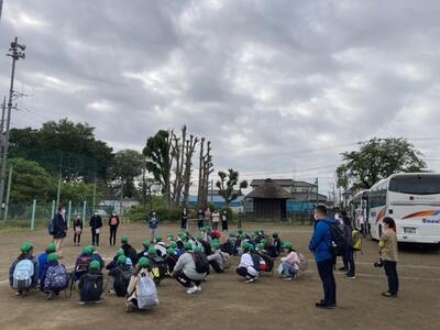 順調に関越自動車道を走り、予定通りにトイレ休憩をしました。こちらは青空で日も差しています。車窓からは浅間山、榛名山も見えました!体調を崩す児童もいません。