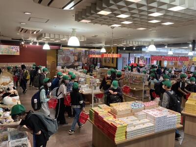 お土産タイムです。エコバックと財布を持って、一生懸命に金額を計算をする子ども達。何が買えるかなー、誰に買おうかなーと、たくさんの思いを巡らせながら買い物をしました。