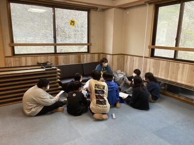 その後、部屋に入るとすぐに係会議です。各係で話し合いをして、今後の予定や活動の注意点を確認しました。