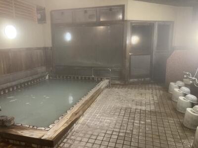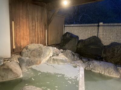 クラスごとに30分ずつ時間をとっていたので、ゆっくりと温泉に入ることができました。天然温泉のため白っぽい成分が浮かんでいますが、これも良い経験です。ドアの外は露天風呂です。