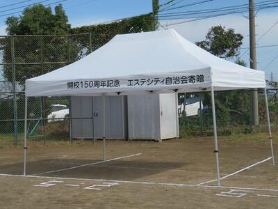 150周年記念としてエステシティ自治会様よりテントを寄贈していただきました。まだ日差しが強い日がありますので、日々活用させていただきます。ありがとうございました。