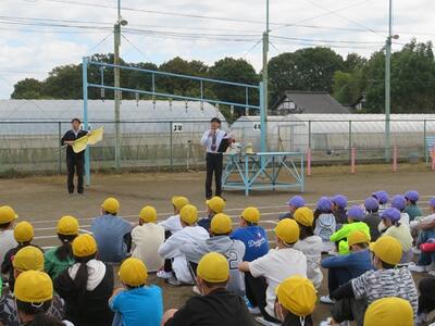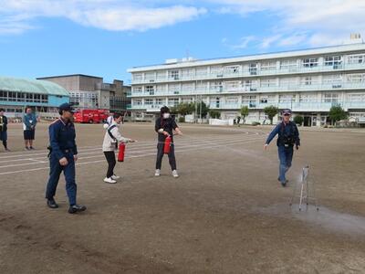所沢消防富岡分署の方々にお越しいただき、2学期の避難訓練を実施しました。例年は9月に行っていましたが、9月の暑さを避けるために今年から10月末に行っています。