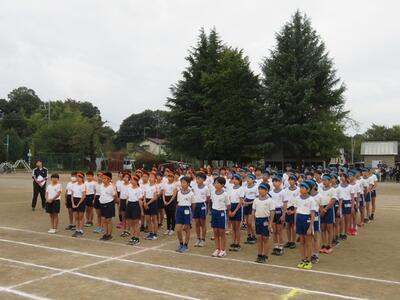 10月31日、富岡小学校の6年生との親善体育大会を行いました。この日は午後から雨も心配されましたが、予定通りすべてのプログラムを大勢の保護者の方の応援のもとで実施することができました。肌寒い中、ご参観・応援にお越しいただきありがとうございました。