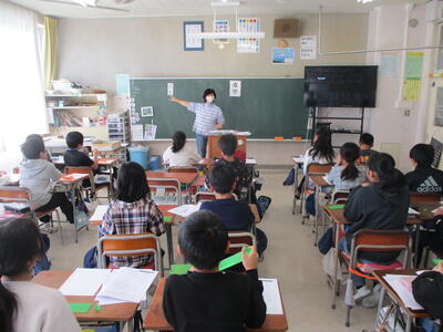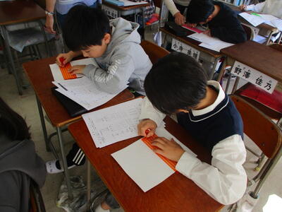 初めに点字について「花みずき」の方から話を聞き、次に自分たちで点字を打つ体験をしました。