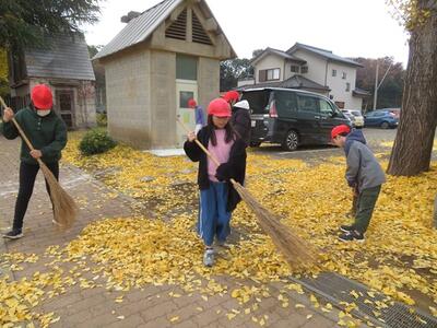 持久走に取り組みたいところ、せっせと落ち葉を集めてくれました。これで安全にレンガ道を歩くことができますね。