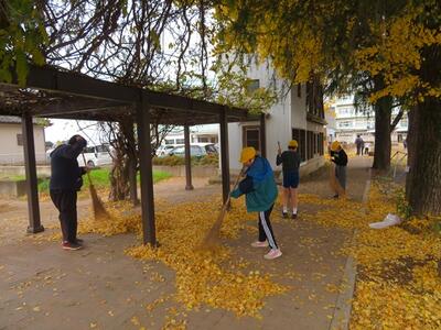 朝休みから環境美化委委員の児童が落ち葉はきをしてくれました。