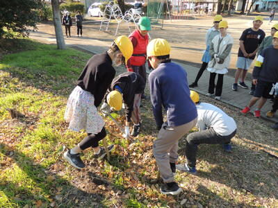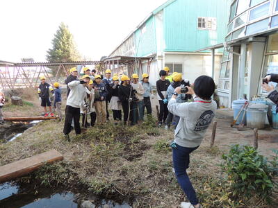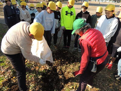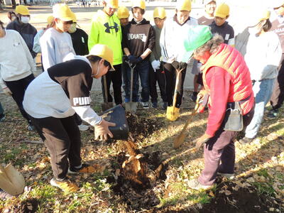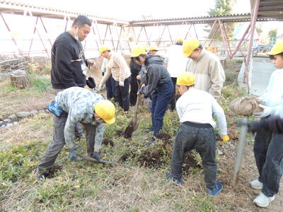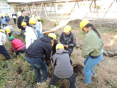 みんなで一堀、一堀交替しながら、根を植える場所を掘っていきました。