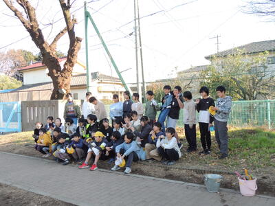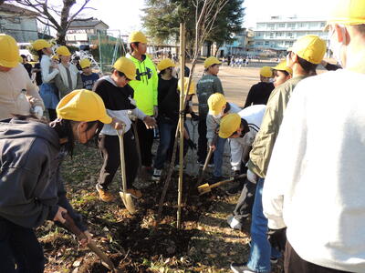 ビオトープのリノベーション6年生 ~山桜などの植樹~