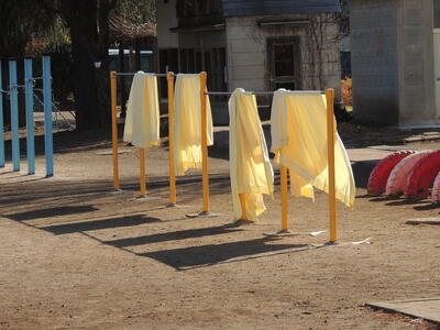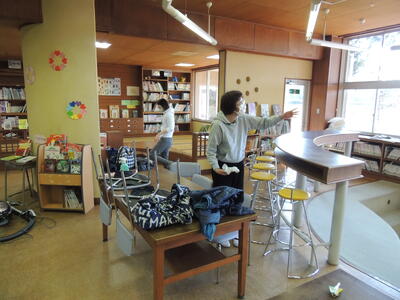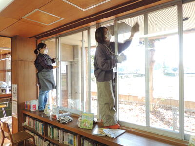 学校応援団の方々が半日かけて、図書室のカーテンの取り外しと洗濯、