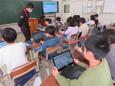 他の教室では、冬休みの課題の取り組み方を丁寧に指導し、子供たちも話をよく聞いて一つ一つ丁寧に操作していました。画面をタッチした操作が上手になってきた2年生でした。