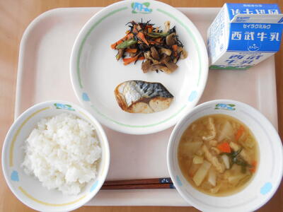 ごはん 牛乳 サバのぶんかぼし ひじきのいために ぐだくさんみそしる
