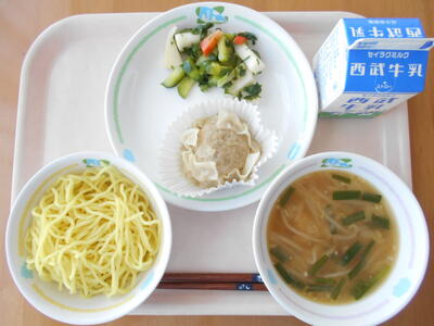 ちゅうかめん 牛乳 みそラーメン てづくりジャンボしゅうまい かぶときゅうりのオイルづけ