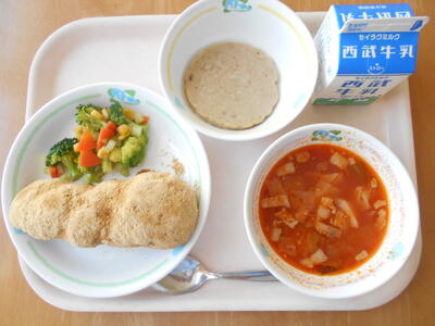 きなこあげパン 牛乳 ボロニアソーセージ ブロッコリーサラダ ミネストローネ