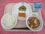 さといものクリームスパゲッティ 牛乳 とりにくのガーリックやき かいそうサラダ