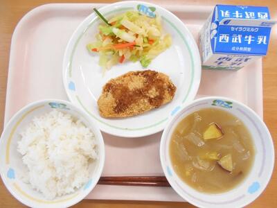 ごはん 牛乳 アジフライ キャベツのぽんずあえ さつまいものみそしる