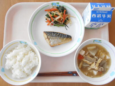 ごはん 牛乳 サバのぶんかぼし ほうれんそうのごまあえ とんじる