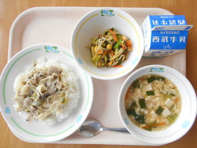 ごはん 牛乳 しおぶたどん チョレギサラダ にらたまスープ