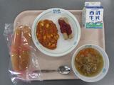 今日は、明日の運動会に向けた「運動会応援献立」です。チキンカツのカツは「勝つ」ということで、日々の練習の成果を運動会で十分に発揮して頑張ってください。給食室から皆さんを応援しています!