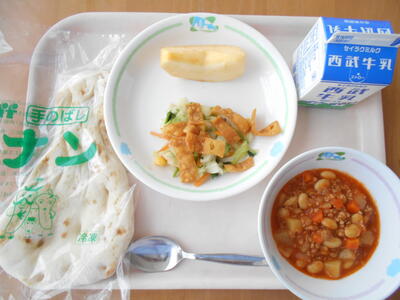 ナン 牛乳 チリコンカン パリパリサラダ りんご