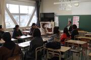 また、栄養士と調理員のチーフから、おいしい給食を届ける思いを伝えてもらいました。給食づくりは、朝6時の野菜の受け入れから始まることを聞いて、子どもたちも驚いていました。代表児童が感謝の手紙を渡しました。
