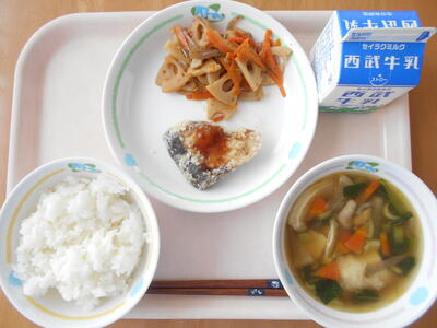 ごはん 牛乳 ブリのてりあげ れんこんのきんぴら せんべいじる