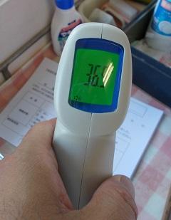 所沢市教育委員会から全ての学校に支給されました。入学式の際には、保護者の方も含めて全員の体温を測定しました。朝の子どもたちの体温はピンクの健康観察カードに記入していただいていますが、測り忘れた場合や、熱がありそうに見える場合は保健室で測定しています。