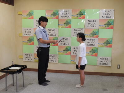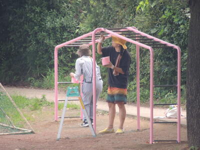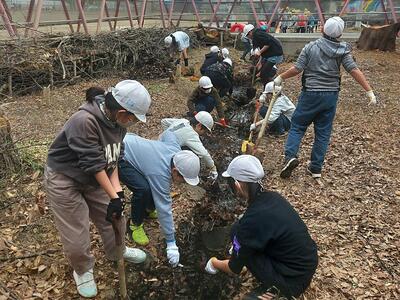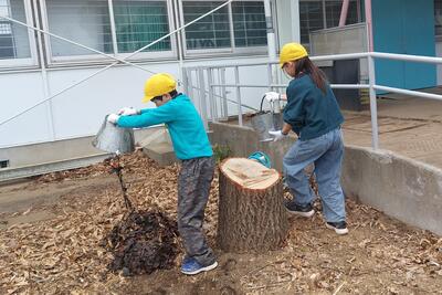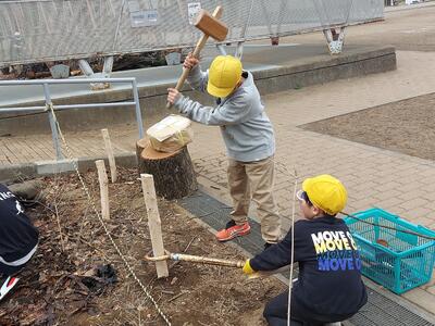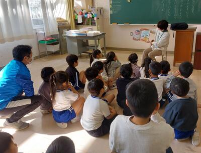 気づいた一年生ががんばってくださいって声をかけると、作業員の人も、笑顔に。みなさんには人を元気にする力がある。