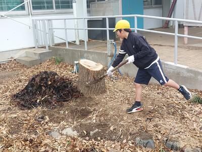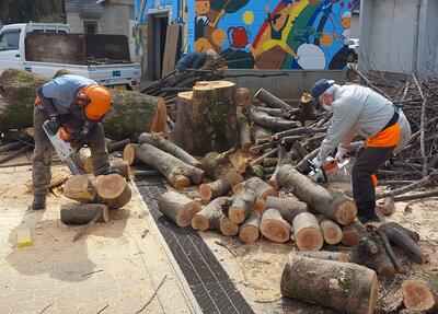 固くて、重いけやきの切り株をクレーンで持ち上げてトラックで運び出してくれる人。