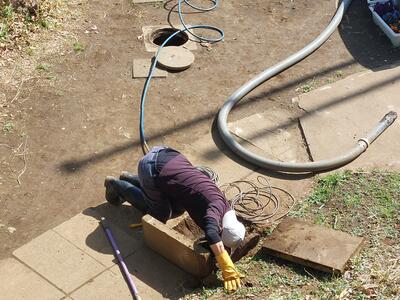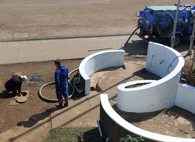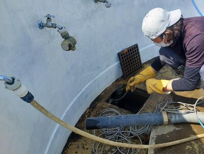 バキュームカーや高圧洗浄機をつかって、作業員さんが排水溝に手を入れて、何時間もかけて作業をしてくださいました。