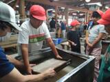 じゃが丸くんを作っている様子です。落合さんのじゃがいも使って、調理員さんが手作業で潰します。
